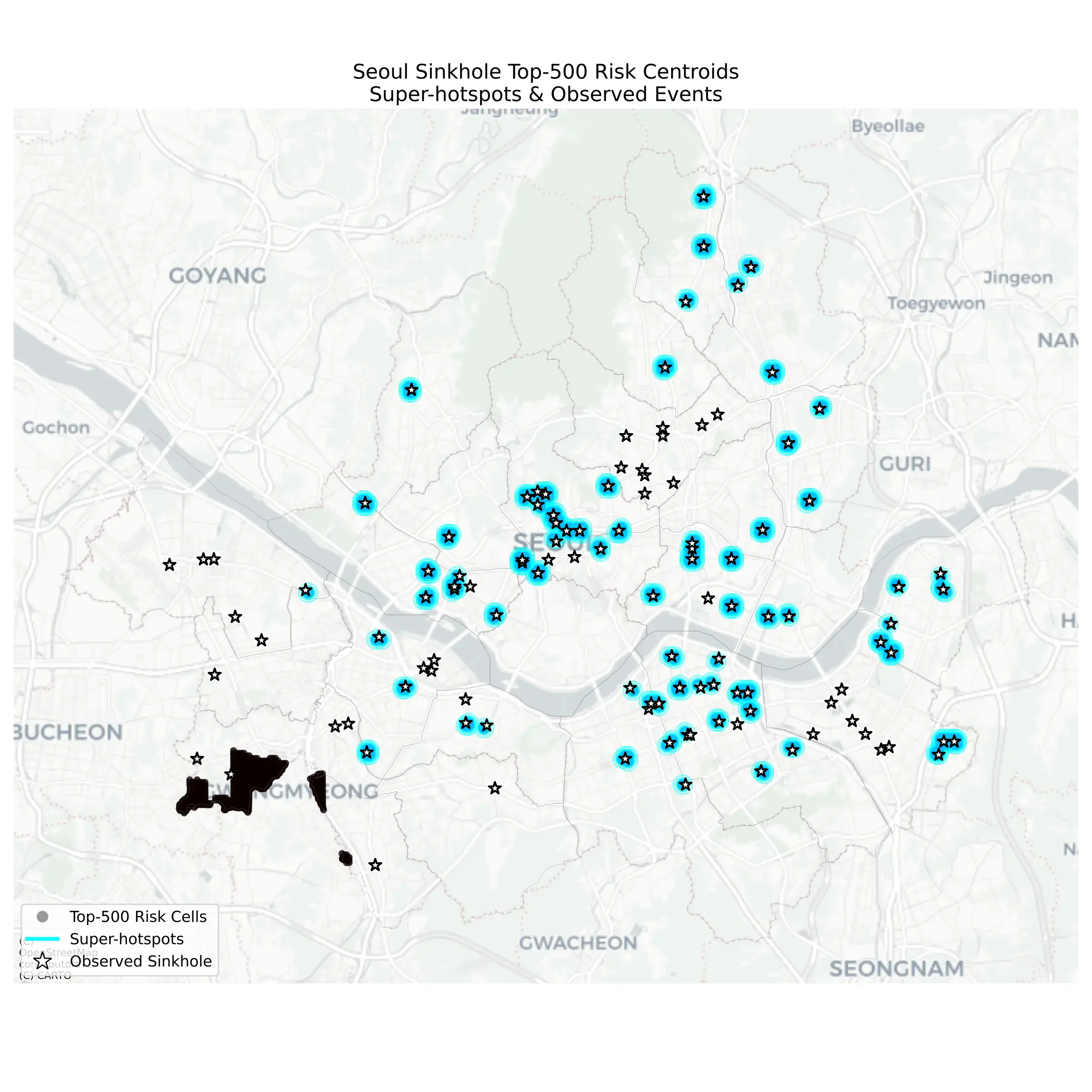 sinkhole-civic-sentinel본 프로젝트는 사회적 요인으로 인해 알기 어려운 도시 내 싱크홀 위험을, 시민의 Crowd Sensing(여기선 포트홀 제보)를 활용한 Two-Stage ML 모델을 통해 서울시 전역 100m 격자별 위험도를 산정하고 우선 점검 리스트를 제공함으로써, 자원 운용의 효율성과 사고 예방 효과를 입증하며, 안전한 도시 환경 구축을 목표로 합니다.